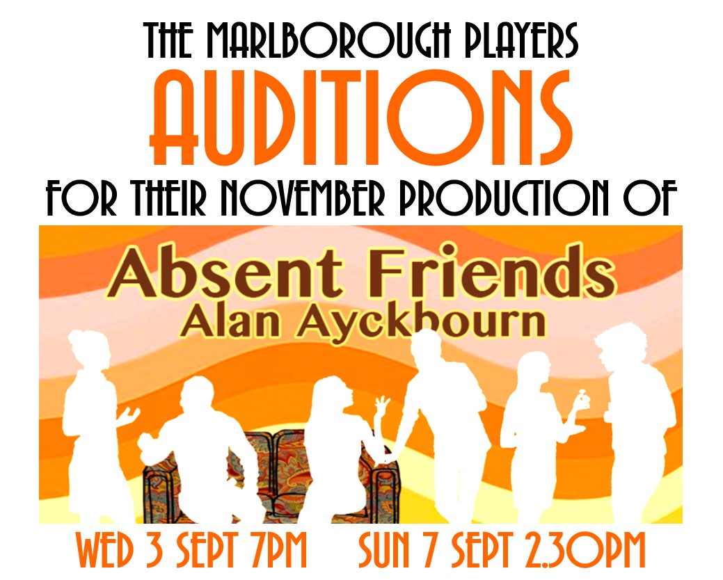 Open auditions for our next production “Absent Friends” by Alan Ayckbourn (Performance Dates 20-22 November 2025) will be taking place on Wednesday 3rd September at 7.00PM and Sunday 7th September at 2:30PM at the Quaker Meeting House, The Parade, Marlborough. SN8 1NE (next to the Cinema).